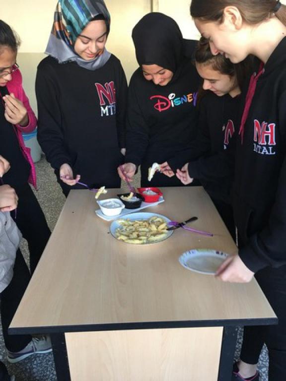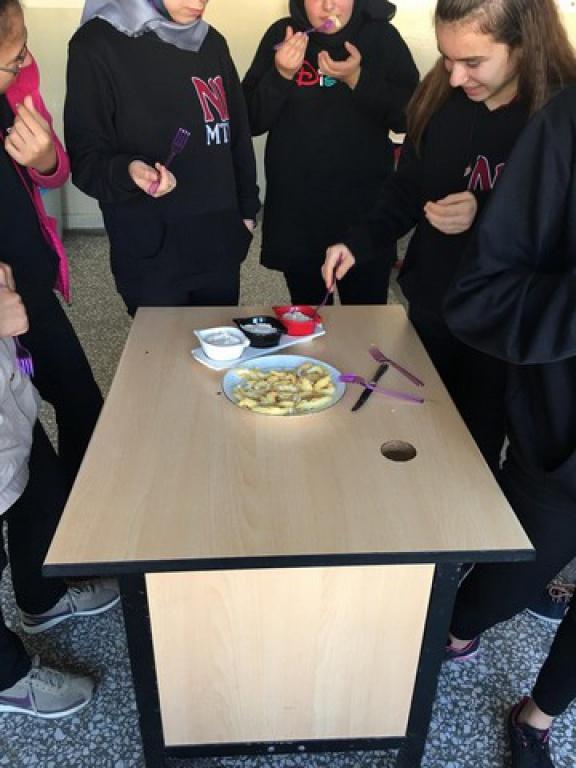 Okulumuzda 2019-2020 öğretim yılı 9B şubesi ile Okulumuz İngilizce Öğretmeni Figen Yücel koordinatörlüğünde, "Ben Onu Hiç Yemedim" adlı proje yürütülmektedir. Projemiz 2019 Ekim ayından 2020 Mayıs ayına kadar sürecektir. Öğrencilerimizle, ayda bir kez, daha önce hiç yemedikleri ve anket sonucu belirlenen yiyecekler temin edilerek, sınıfta öğrencilere tattırılaktır.Tattıktan sonra, o yiyeceğin faydaları, yapılışı...vs. hakkında bilgi verilecektir.Farklı lezzetler tadılırken, öğrencilerimizin sosyal ve kültürel anlamda desteklenmesi hedeflenmektedir. Aynı zamanda sağlıklı beslenme kültürü de öğrencilerimize kazandırılmaya çalışılacaktır.