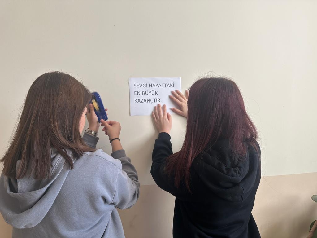 Kök değerler projesi kapsamında sevgi temalı slogan etkinliği yaptık.